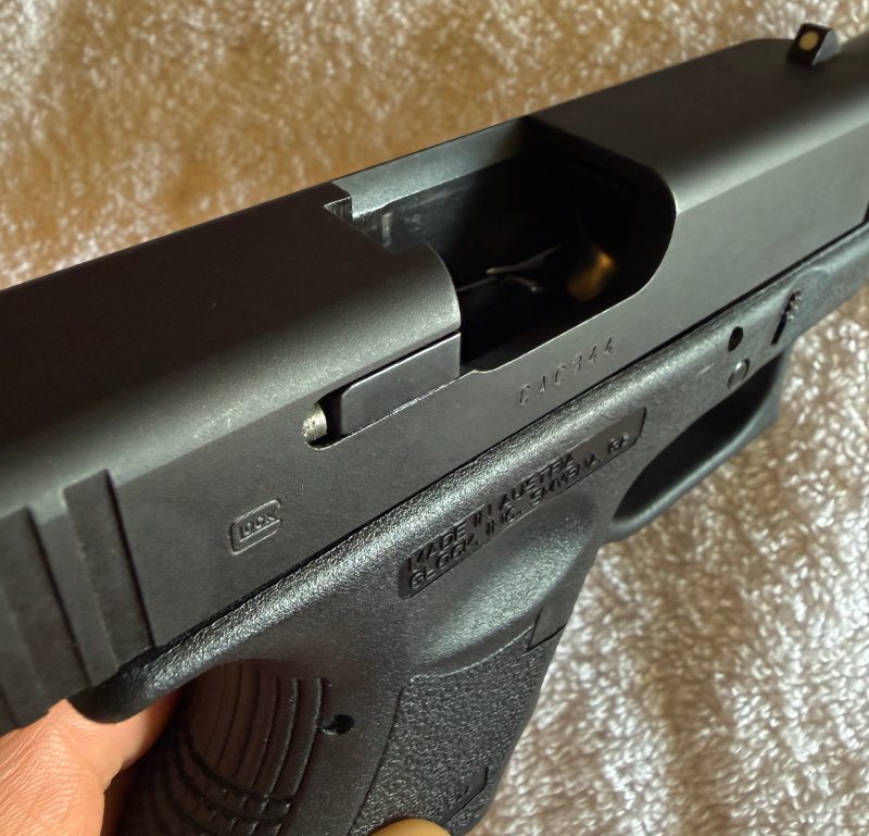 This subcompact model features Glock’s signature Safe Action system, providing a consistent trigger pull and multiple internal safeties. Its compact frame allows for easy carry while still delivering strong stopping power. The pistol is also compatible with larger Glock .40 S&W magazines (G23/G22), adding versatility for range or duty use.